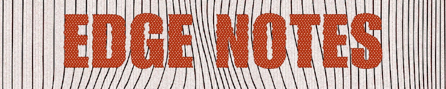 And that (and more) is what Edge Notes is about. Not war, not the news cycle, not — god strike me dead — politics. But the space between all of these things.